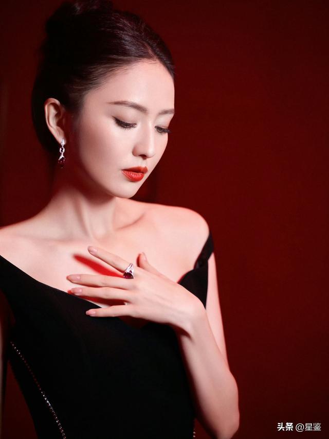 配饰的选择更是点睛之笔:红宝耳坠与戒指相互呼应,用一抹浓烈的红打破了黑裙的沉闷,和唇色形成完美呼应,让整体造型更有层次。这种“基础色+同色系点缀”的思路,普通人也能轻松复刻,既不会用力过猛,又能凸显品味,不管是搭配红唇还是裸妆,都能hold住不同场合,轻松穿出属于自己的优雅气场。