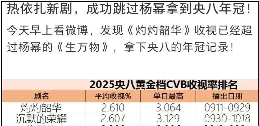 ——2025年,热依扎主演电视剧《灼灼韶华》在央视播出,收视刚刚好超过了杨幂主演电视剧《生万物》,杨幂见到热依扎就喊上了“华华”,可见她还是挺关注同龄女星事业发展的。