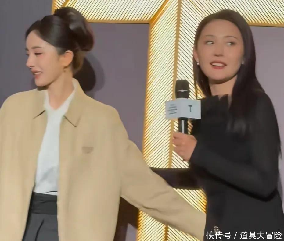 围观杨幂和热依扎同框互动全程,会发现其实是杨幂先主动,热依扎正在接受采访,杨幂上前拥抱了热依扎一下,还来了一句:“华华说得太好了,给华华鼓掌!”