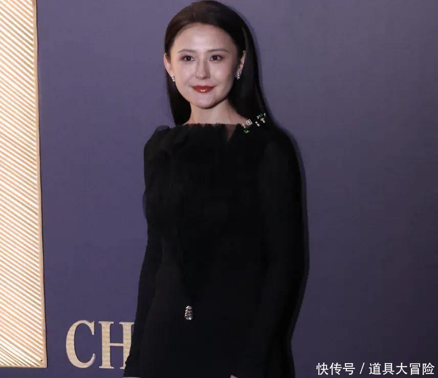 相比较之下,穿了一身简单复古黑色长裙的热依扎就低调许多了。