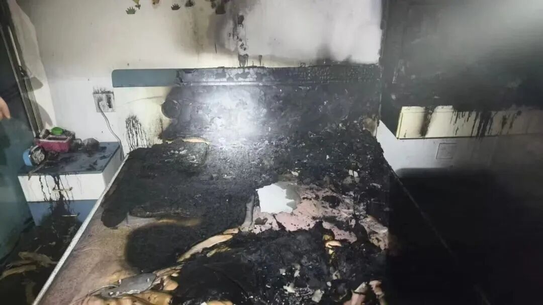 2024年12月28日,湖北武汉一小区住户使用电极式电热水袋充电时,不慎引发电气线路起火,卧室被烧得面目全非,所幸住户及时撤离,未造成人员伤亡。