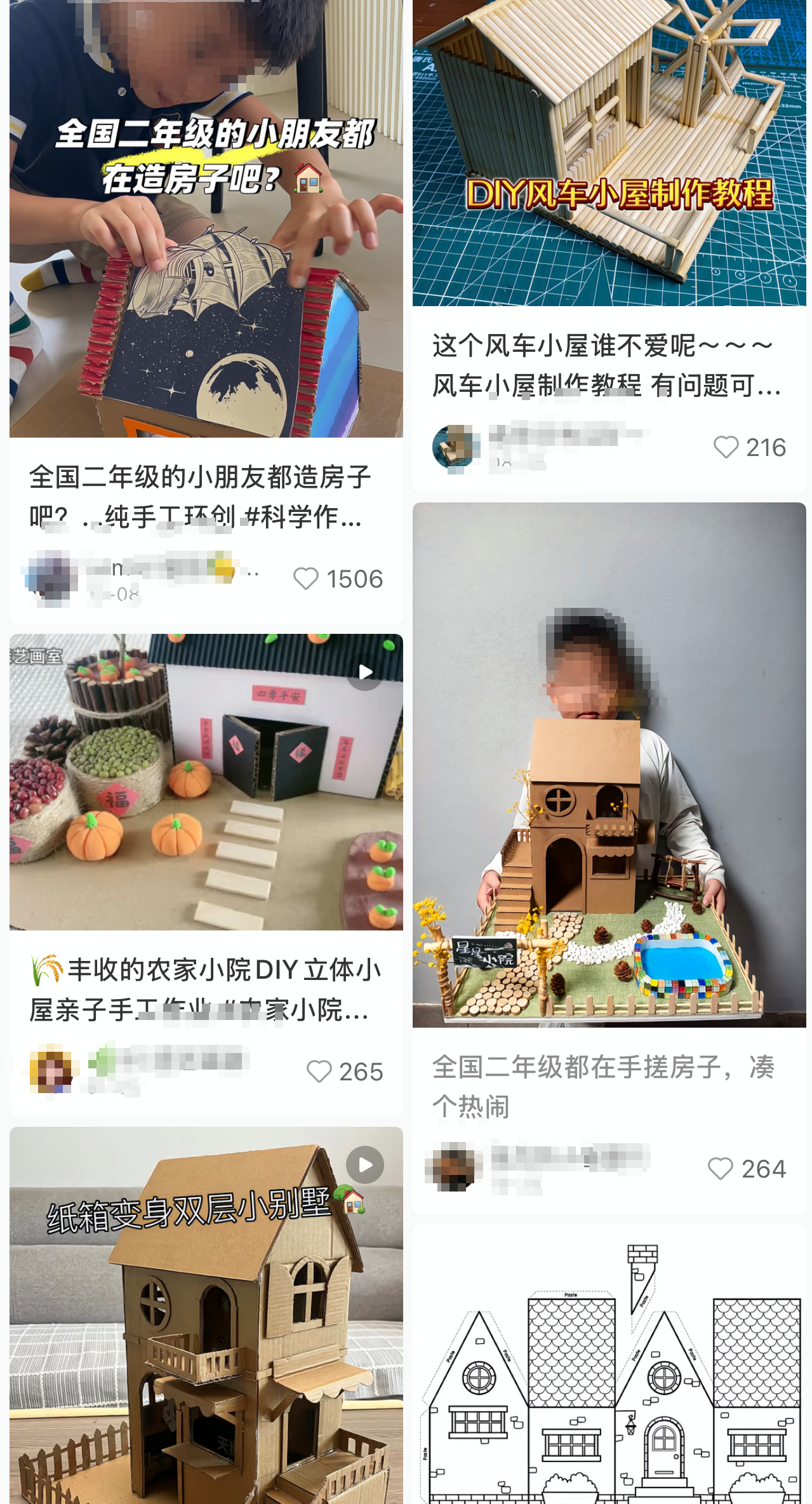 有家长哭笑不得地感慨:还以为是浙江特产,结果北京、福建、西安、广东的家长纷纷举手:“我们也有!”原来,手工造房子是二年级科学作业,已经跨越地区成为了“全国统一”。
