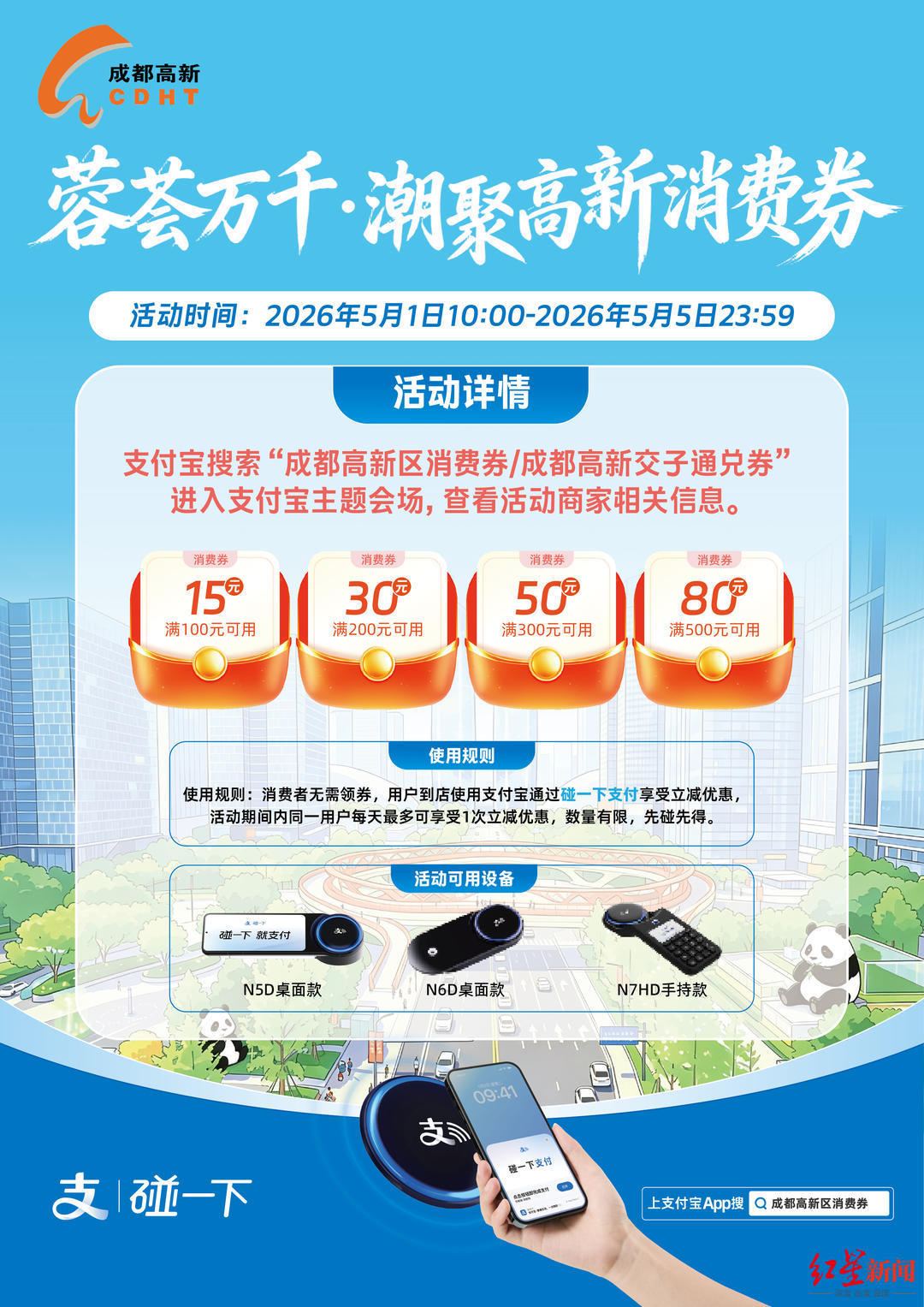 据了解,成都高新区本次“五一”期间重磅推出三大特色消费券,覆盖汽车消费、电子、日常消费等重点领域,总补贴规模近 3000万元。
